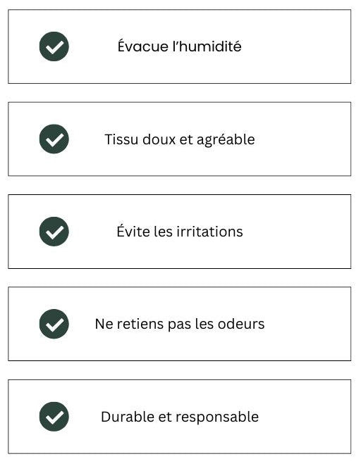 La fibre de bambou régule naturellement l’humidité et sèche rapidement. Elle empêche aussi la prolifération des bactéries responsables des mauvaises odeurs. Vous restez frais plus longtemps, même après une journée active.
